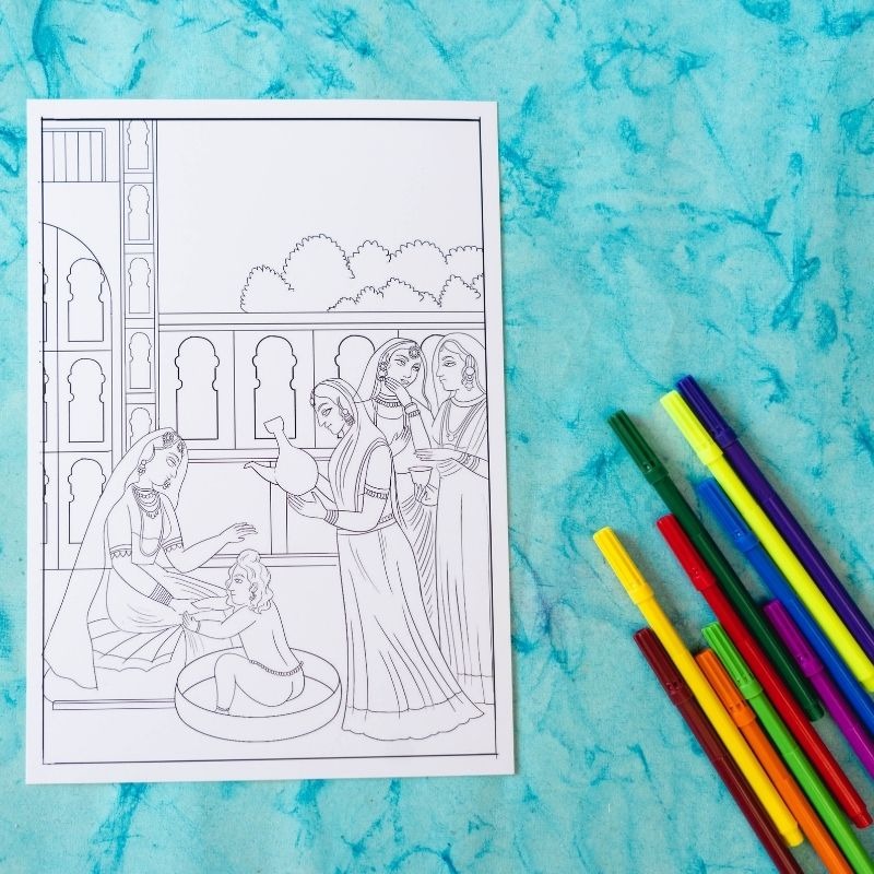 • It is a miniature painting of baby Lord Krishna surrounded by his mother Yashoda and other women.