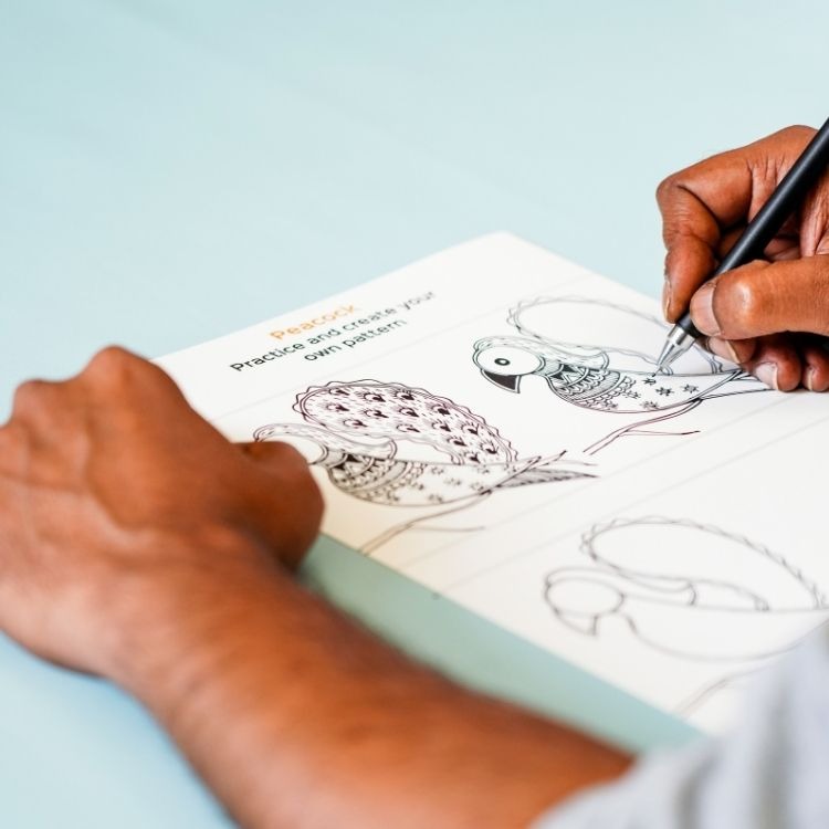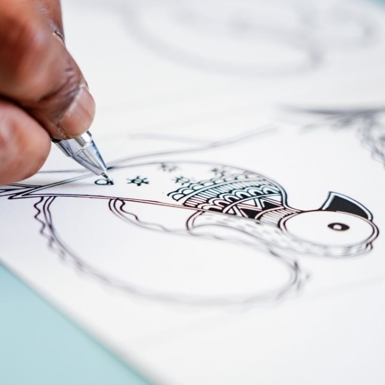 A self-taught Madhubani artist, Shamli Das has her own take on Madhubani, while maintaining the essence of the artform. The finesse, attention to detail and the happiness seen in her designs can mesmerize anyone. She frequently conducts Madhubani workshops for both adults and kids.