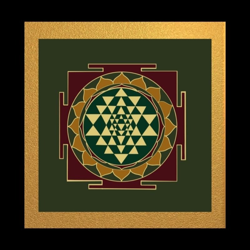 The Sri Yantra is the purest form of a mandala. A 'yantra' literally means a device. The Sri Yantra is thus a device for spiritual advancement. It consists of 9 interlocking triangles that surround a central point called the 'Bindu'. Since it has 9 triangles, it is also called the 'Navayoni Chakra'. Each triangle represents genesis and the formation of the human body. The interlocking triangles further form 43 smaller triangles.