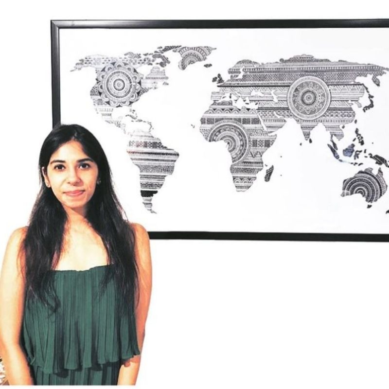 Being a finance graduate from J.D. Birla Institute, Department of Management, she was set to pursue a master’s degree in finance from HEC, Paris, until the time she stumbled upon this beautiful artform called mandalas and zentangles. Since then, for her, there’s been no looking back and she has gotten herself completely submerged in it. All her work is delineated using pen, ink, and paper. They’re all hand-curated designs, in black and white, trying to capture the essence of in-line symmetry and asymmetric art-forms using extreme intricacy. She has conducted over 800 mandala workshops, nationally and globally, in 13 countries, over the past 5 years.