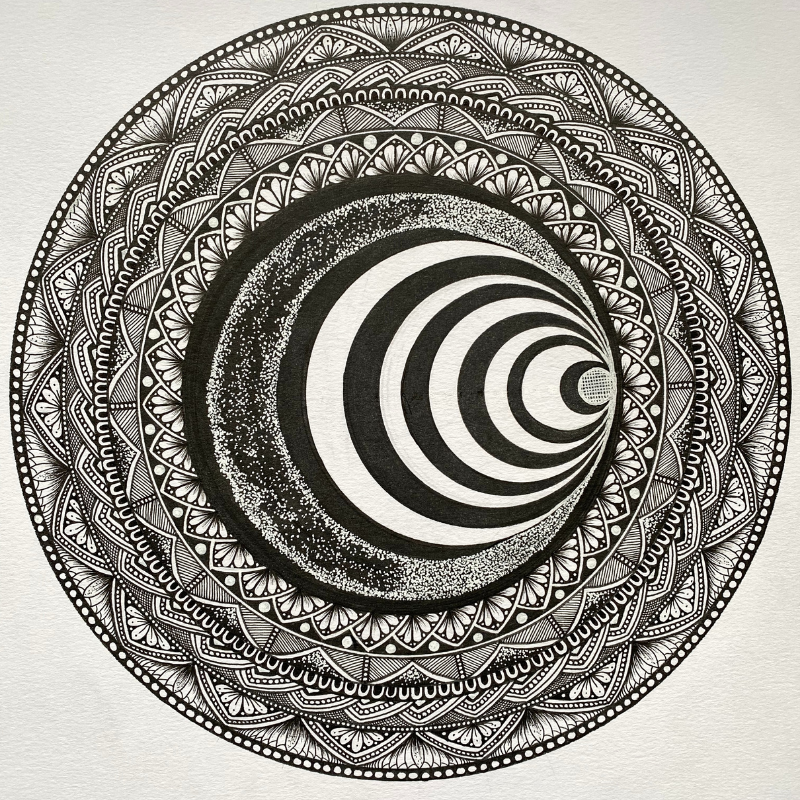 Mandala means center, circle, or disc. It is used as a meditative tool, for establishing sacred space, and for representing Gods and deities. Different cultures have different types of Mandalas.