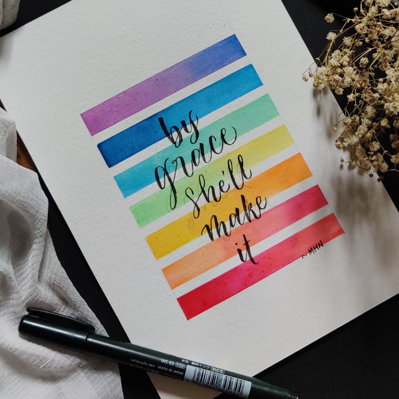 Watercolor blends are a way of mixing two or more colors to form a nice ombre or gradient. Faux calligraphy is a way of imitating the look of calligraphy using very basic tools. Together they make a beautiful combination to make something unique.