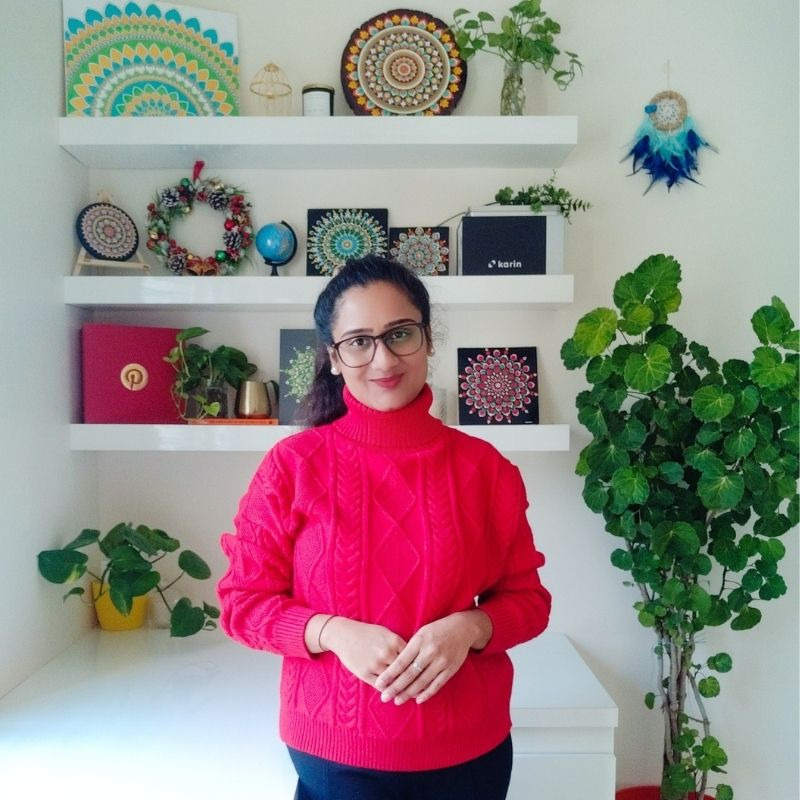 She is a mandala artist and has been practicing mandalas for the past 6 years. She is an interior designer by profession but then started purusing her passion and never looked back. She gets her inspiration from nature and also loves to experiment with different media.