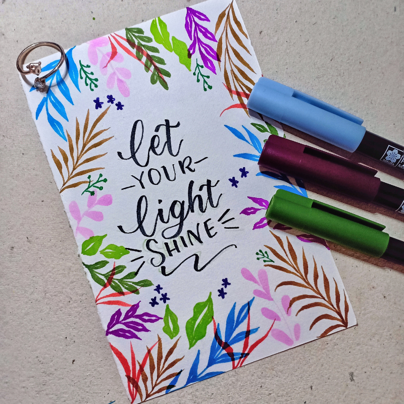 In this session, you will learn about brush pen calligraphy with floral designs around it, strokes, usage of brush pens, and how one can create a greeting card with it.