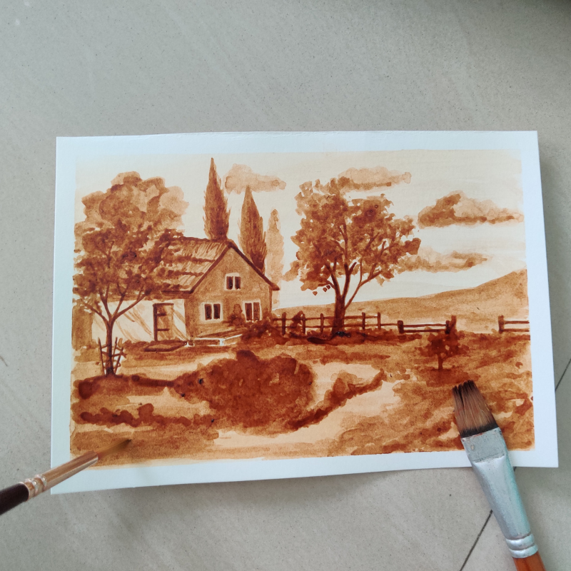 The inspiration for this art form came from ancient times where Chinese artists used tea in their art to give their paintings a sepia look. But now we will be doing this with coffee powder to bring that look.