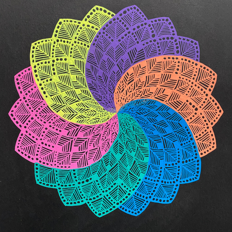 A mandala is a complex abstract design that is usually circular in shape. The word 'mandala' translates to circle in the Sanskrit language. They contain different geometric motifs and shapes that are made with a lot of precision. These designs also hold a great deal of symbolism in Hindu and Buddhist cultures.