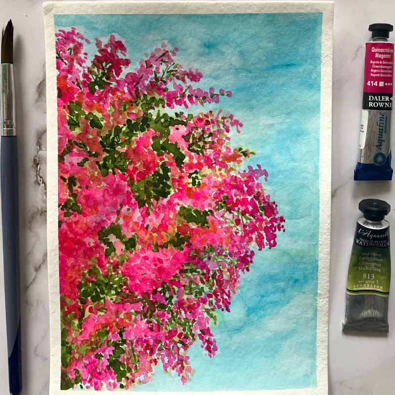 In this session, you will learn about the age-old art form in a much more familiar way, starting with an introduction to painting loose-styled bougainvilleas using multiple techniques - wet on wet, and dry on wet, to come up with a gorgeous painting. All of the mentioned will be taught in a way to provide you with a complete hands-on experience of the art form by the end of the workshop.