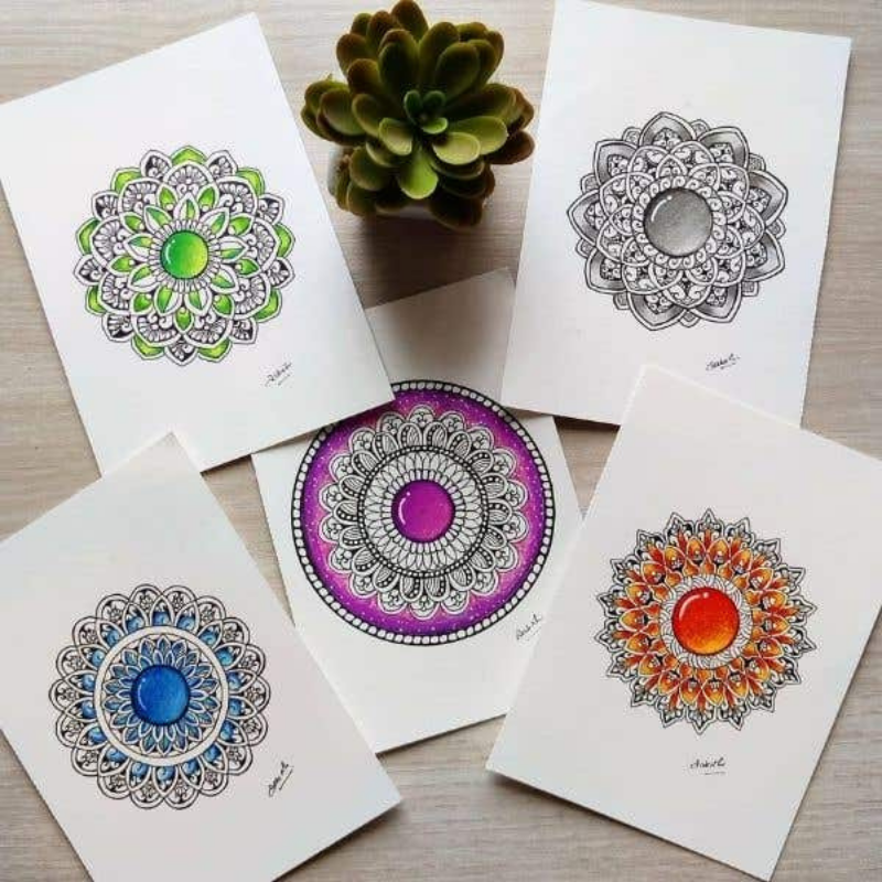 Driven by passion, she is a self -taught practitioner and learner of art. She makes intricate artforms like Mandalas, Zentangles, pattern arts and doodles. She has conducted multiple workshops, art exhibitions and has collaborated with many brands. In addition to this, she also helps beautify the spaces of offices, homes and cafes.