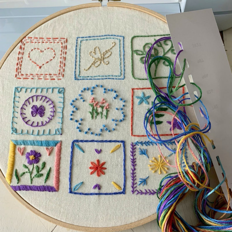 In this session, you will learn about Basic Embroidery, this session will cover a design that is made up of 9 panels with 9 basic stitches and their variations you will learn as you progress. There will be a basic application to each stitch followed by a variation – so that you can practice various ways of using it when you embroider it in real-time. A Step-by-Step Tutorial will be shown with each stitch along with tips and tricks to embroider. You will be amazed and happy to see how quickly you will learn and soon fall in love with embroidery!