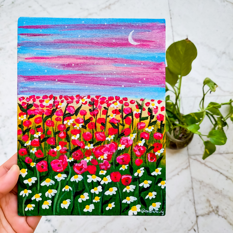 In this session, you will learn to paint a simple yet very fulfilling acrylic texture painting. You will get a fair idea of the nature of acrylic paints. If you are a beginner at acrylics, this can be a helpful session and intrigue you to explore this medium much more!This is a 'beginner-friendly session! (Age: 12+)