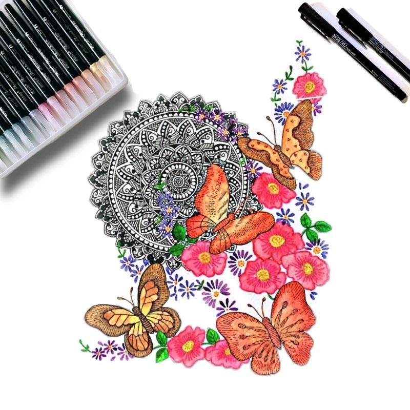 Being a finance graduate from J.D. Birla Institute, Department of Management, she was set to pursue a master’s degree in finance from HEC, Paris, until the time she stumbled upon this beautiful artform called mandalas and zentangles. Since then, for her, there’s been no looking back and she has gotten herself completely submerged in it. All her work is delineated using pen, ink, and paper. They’re all hand-curated designs, in black and white, trying to capture the essence of in-line symmetry and asymmetric art-forms using extreme intricacy. She has conducted over 800 mandala workshops, nationally and globally, in 13 countries, over the past 5 years.