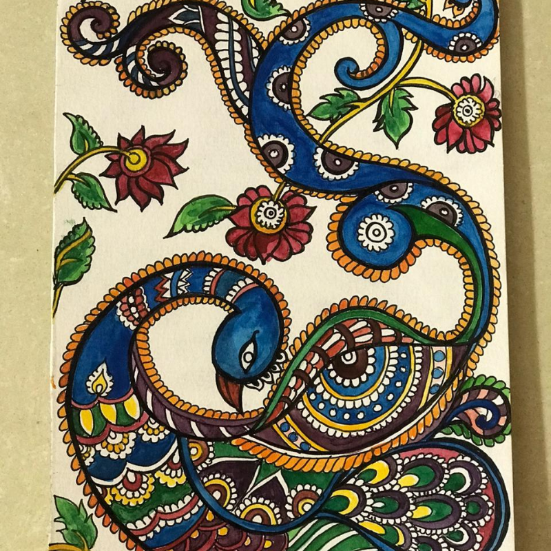 She is a trained graphic designer with immense experience in the field of advertising and is now into traditional artforms. She creates beautiful Kalamkari motifs and gives her own improvisation & creativity, and makes stunning handcrafted decor items.