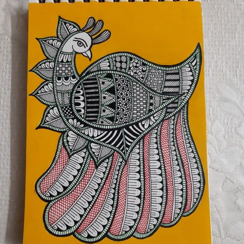Madhubani, which translates to "Forest of Honey", is an ancient Indian artform from Mithila, Bihar. The art is characterized by intricate geometric patterns painted using vibrant colors. In the olden days, these paintings were made using natural tools like sticks and twigs.