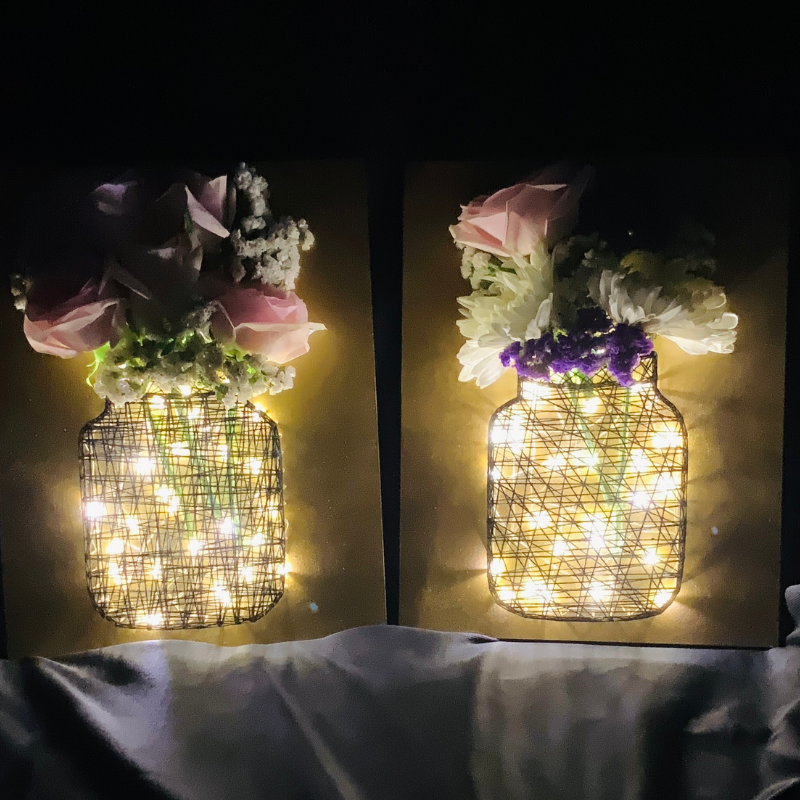 In this session, you will learn about string art and how to create a beautiful mason jar string art piece with lights. You will also learn the entire process of stringing and attaching lights to your pieces.This is a 'beginner-friendly' session. (Age: 12+).