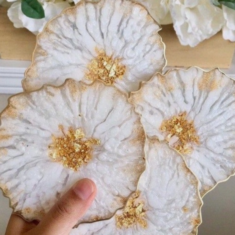 Resin is a durable and strong medium, leaving a high gloss, protective finish that allows for a variety of effects to be achieved in art. Epoxy resin is commonly used in art in a variety of ways, from expressive, hypnotic and magnetic fluid artworks, to use with silicone moulds to cast objects such as coasters, dishes and jewellery, as well as sealing other works like drawings, watercolour works, oil paintings, and photographs, creating a beautiful, high shine, ultra-glossy protective varnish.
