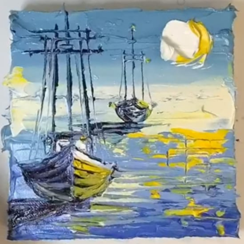 The art of Acrylic paint can be traced back as far as 1934. Acrylic paint was first created by a German chemist called Otto Rohm who developed acrylic resin that transformed into paint. Knife painting is a technique where different shapes of knives are used to apply color on paper/ canvas. This is also known as Impasto, because of its thick consistency/ nature of application in making Abstracts, landscapes, florals, and many more.