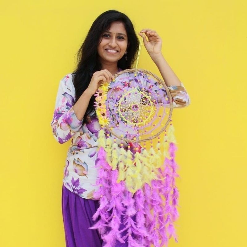 She worked as a software engineer at an MNC for 3 years after which she quit her job to pursue her passion - art & handicrafts. Her establishment, Junicorn Crafts has provided employment opportunities to women from marginalized backgrounds. She also manages an online store of quality materials for dreamcatchers to help fellow artists with their art.