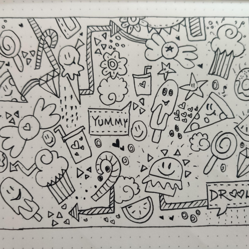 Doodle art is free form art which will allow the artist to let their imagination flow! The focal point would be a theme and every element would be added on to be an artistic addition to the theme.