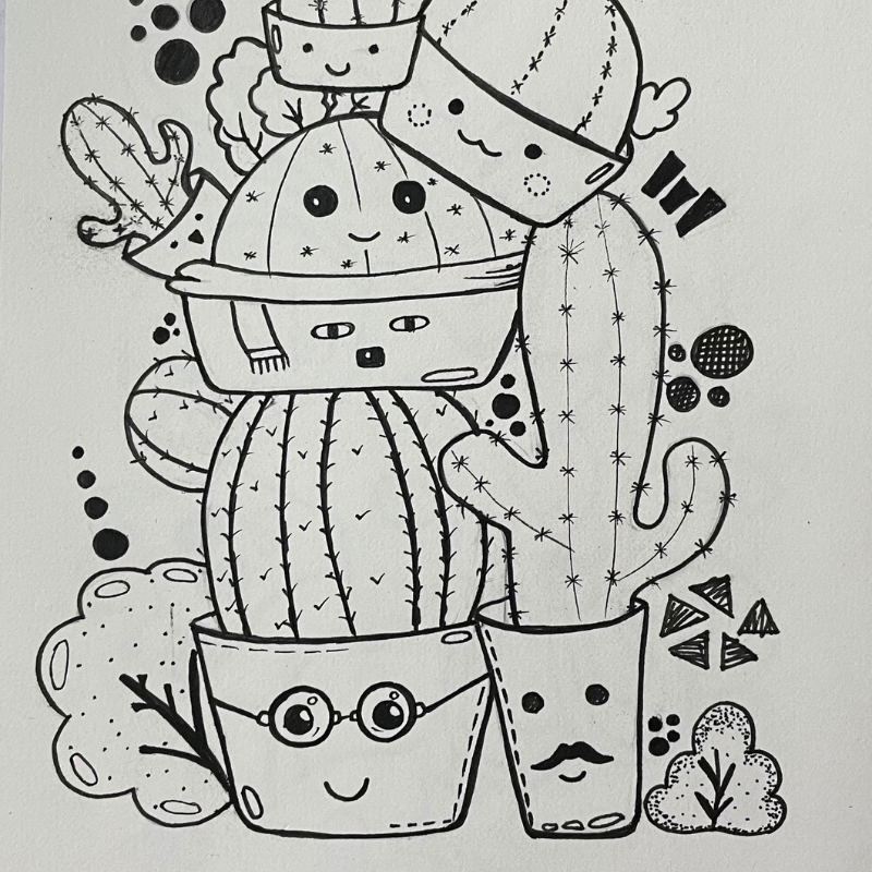 Doodle art is free form art which will allow the artist to let their imagination flow! The focal point would be a theme and every element would be added on to be an artistic addition to the theme.